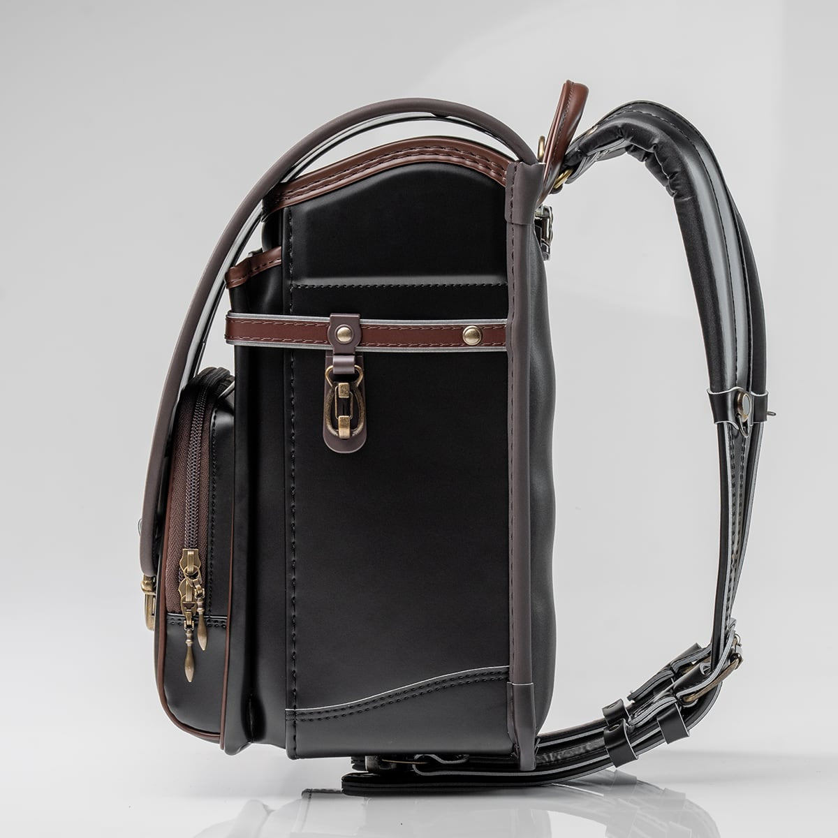 ランドセルのヘリ巻部分、持ち手、サイドのベルトにはチョコカラーを使用しました。