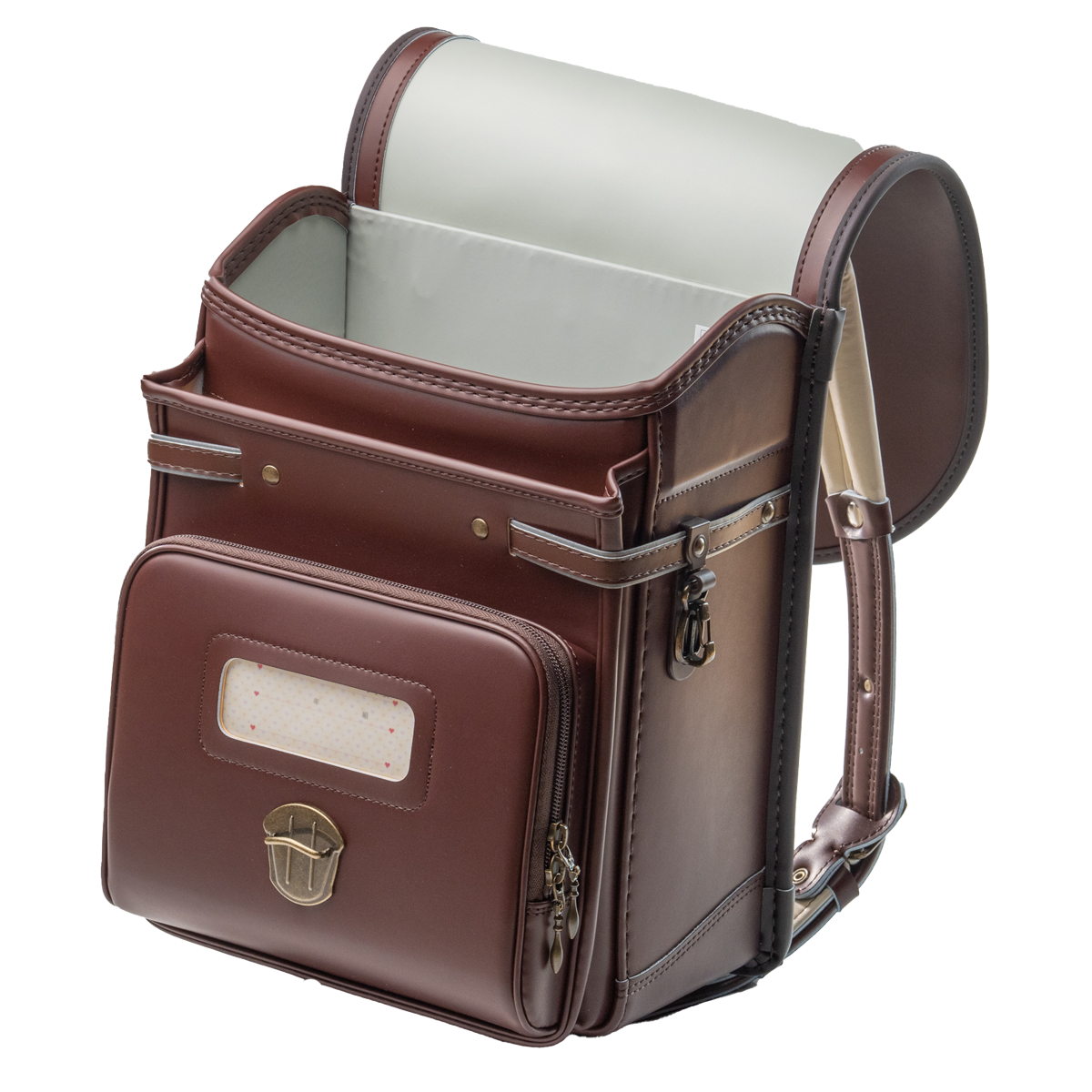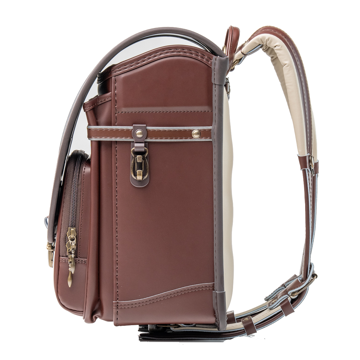 ランドセルのヘリ巻部分にも、チョコレートカラーを使用しました。