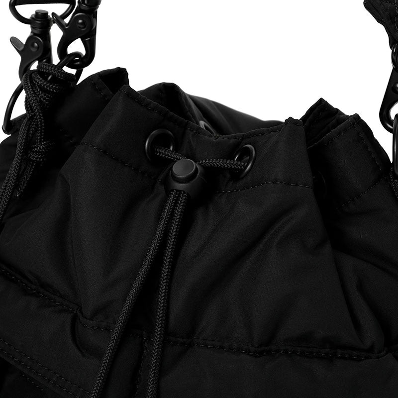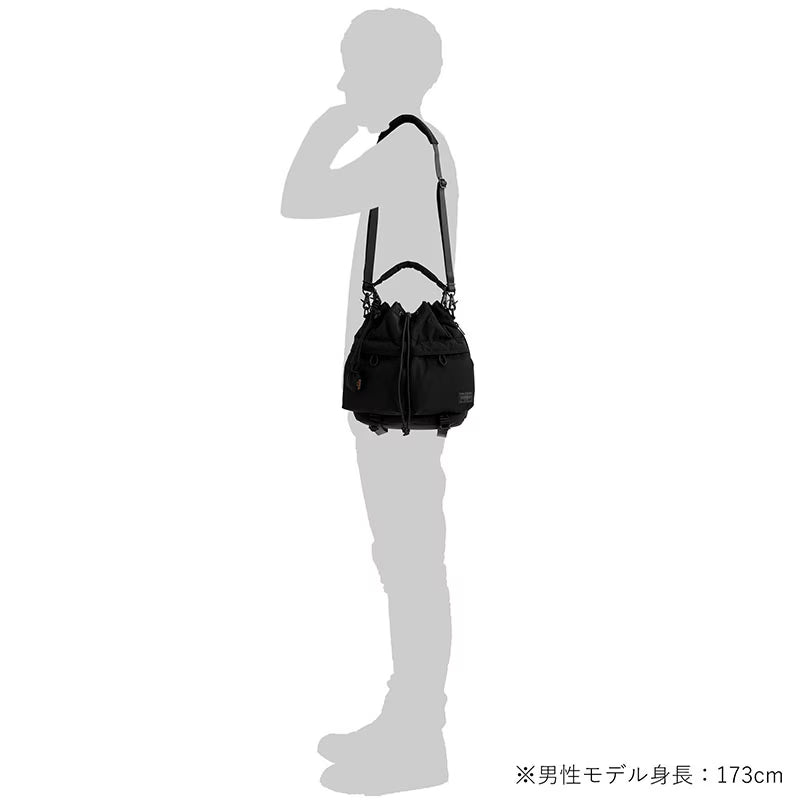 2WAYツールバッグは口元をドローコードで開閉する巾着型のショルダーバッグです。本体側面のファスナーからもメイン収納に直接アクセスできます。取り外し可能なハンドルとショルダーストラップが付属し、肩掛けだけでなく手持ちでもお使いいただける2WAY仕様です。