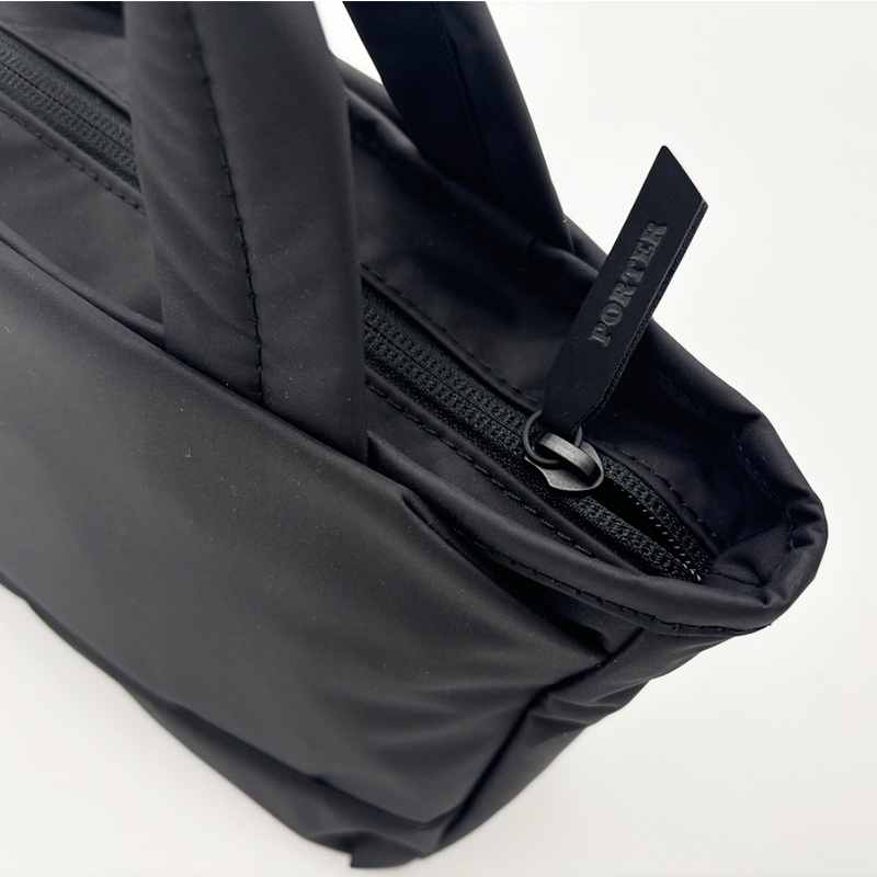 全型ともメイン室のファスナー引き手には、レザー風のマットブラックのPORTERネーム入り引き手を使用しています。手袋をしたままでも使いやすい長めの形状で、ファスナーの開閉をスムーズに行えます。