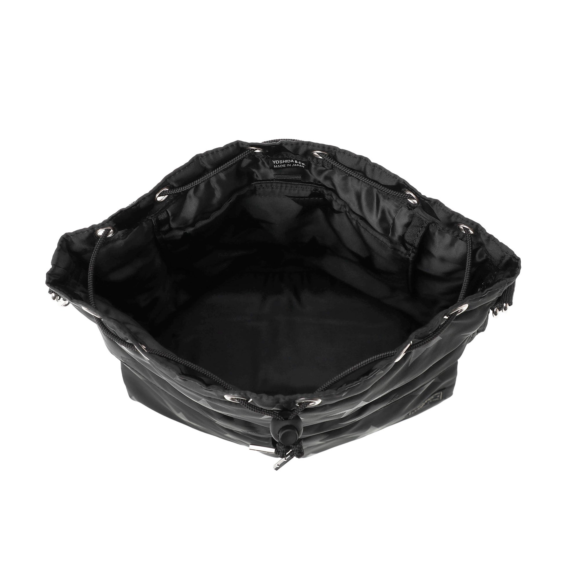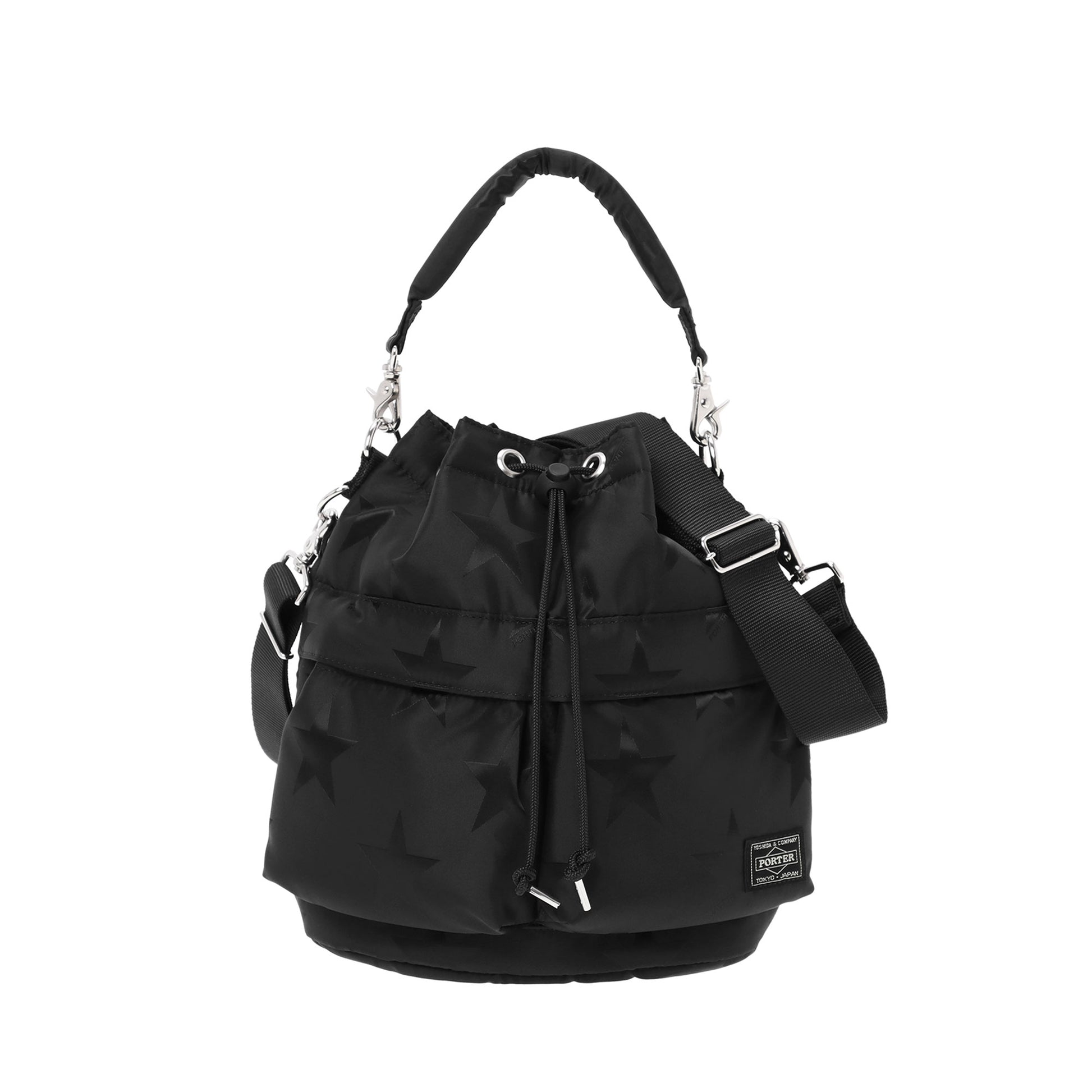 光の角度によって立体的な表情が浮かび上がる星柄とPORTER ロゴを組み合わせたオリジナルの生地は、ブラックワントーンで上品な印象に仕上げています。